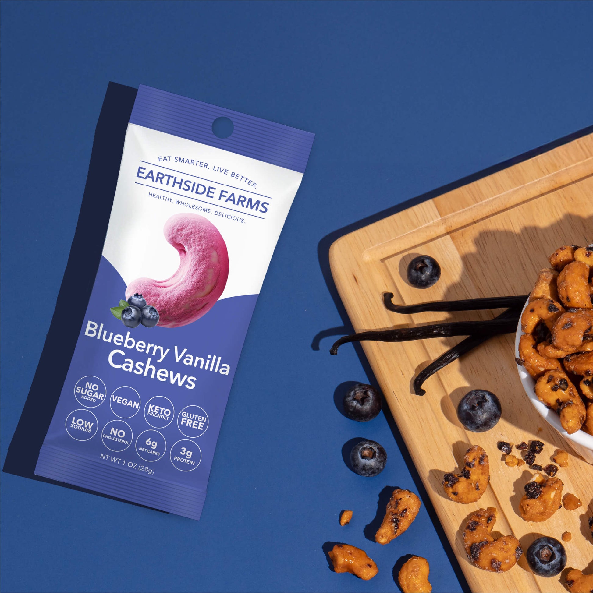 Earthside Farms Blueberry Vanilla Cashews – 1oz (Case of 40)